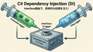 C# 💉依存性注入(DI)って何?(C#) 開発現場では、「開発中は画面(コンソール)に出したいけれど、本番環境ではテキストファイルに残したい」ということがよくあります。こんなときは「 依存性の注入」(Dependency Injection 略してDI)が使えます。実践例:ログ出力... 2026.01.01 C#PCソフト開発